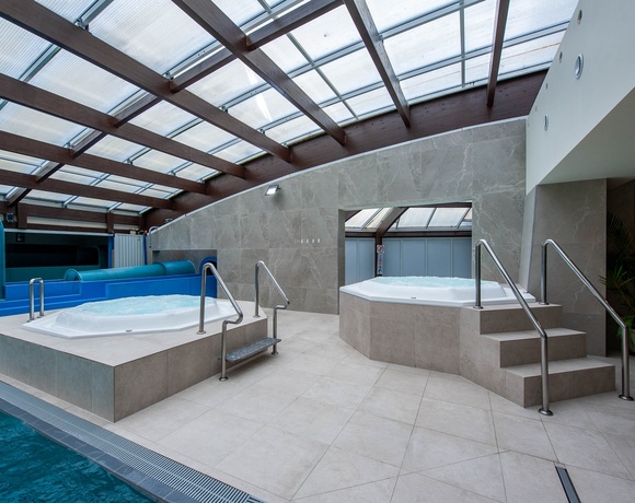 - STREFA II: basen sportowy, sauna infraded, sauna sucha i zimna rzeka, wanny tematyczne z hydromasażem (borowinowa i 2 x jodowo-bromowa),