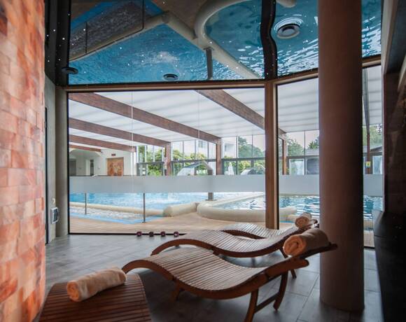 - Basen termalny do ćwiczeń ze stanowiskami do masażu brzucha i całego ciała oraz biczami wodnymi
